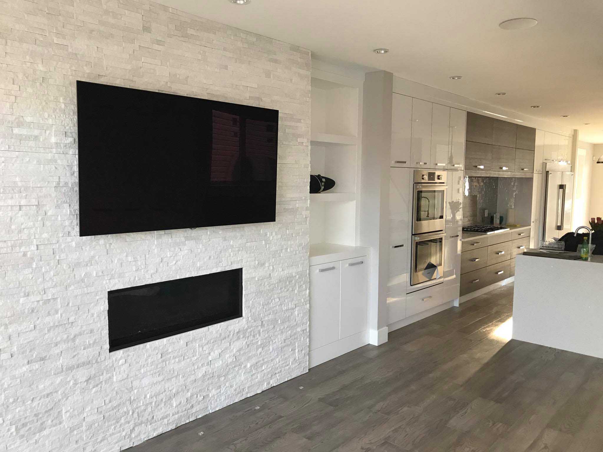 No surface is impossible for your entertainment system. We understand that sometimes your TV might look best mounted in the corner, or on top of the tiles or stone fireplace. That’s fine with us. No surface is too hard, soft or complicated for our decades of experience in audio visual installation and design. We navigate any type of material, or odd shaped room to ensure that your TV is mounted just the way you envision it.